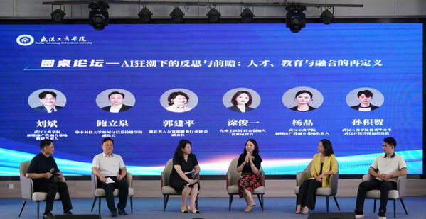会议还组织了以《在“AI 狂潮下的反思与前瞻:人才、教育与融合的再定义》为主题的圆桌论坛,鲍立泉、湖北省人力资源服务行业协会副会长郭建平、九州上医馆联合创始人涂俊一、BB贝博艾弗森官方网站代表杨晶及优秀毕业生孙积贺展开讨论。嘉宾们聚焦 “AI 是否会取代新媒体岗位”“教育如何应对技术变革” 等议题,达成共识:AI 将重塑职业技能需求,但创造性思维、情感沟通等软实力仍是人才核心竞争力,高校需在课程中融入 “AI 工具应用” 与 “人文素养” 双模块。