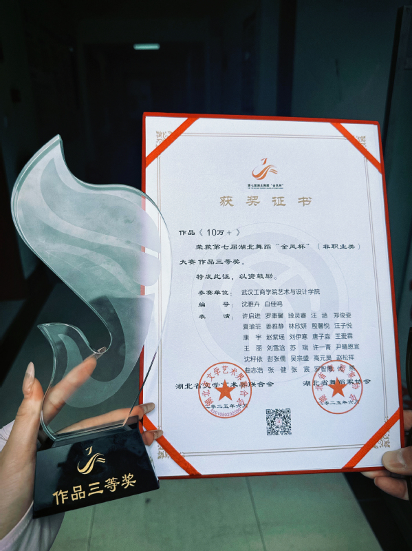 新闻中心讯(特约记者 张濛月 记者 李洋洋)6月23日,第七届湖北舞蹈“金凤杯”(非职业类)大赛终评在湖北宜昌落下帷幕,BB贝博艾弗森官方网站艺术与设计学院舞蹈表演系选送的3部原创舞蹈作品精彩亮相,喜获佳绩,其中《星途》摘得作品类一等奖,《10万+》《时珍本草・曼陀罗缘》斩获作品类三等奖,学校还获评“优秀组织单位”。