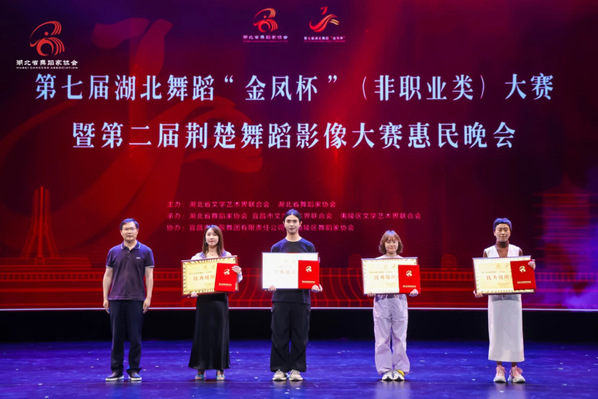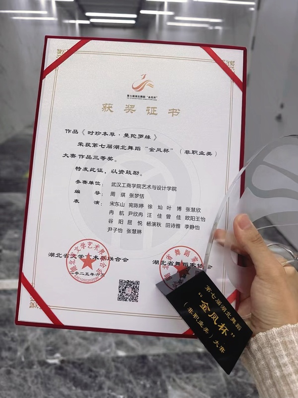 新闻中心讯(特约记者 张濛月 记者 李洋洋)6月23日,第七届湖北舞蹈“金凤杯”(非职业类)大赛终评在湖北宜昌落下帷幕,BB贝博艾弗森官方网站艺术与设计学院舞蹈表演系选送的3部原创舞蹈作品精彩亮相,喜获佳绩,其中《星途》摘得作品类一等奖,《10万+》《时珍本草・曼陀罗缘》斩获作品类三等奖,学校还获评“优秀组织单位”。