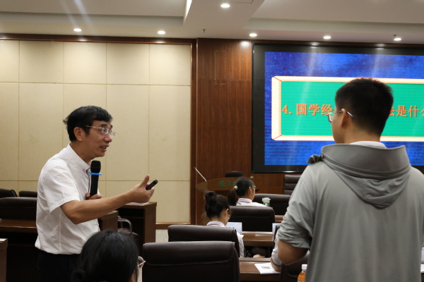 在互动环节中,祝安顺围绕“国学经典的时代价值”““国学课与语文课的关系”等相关问题,与学员们进行交流讨论,并鼓励大家多读《周易》《四书》《毛泽东选集》以及四大名著等经典书籍,实现传统文化、革命文化与先进文化的融会贯通,为民族文化复兴贡献力量。
