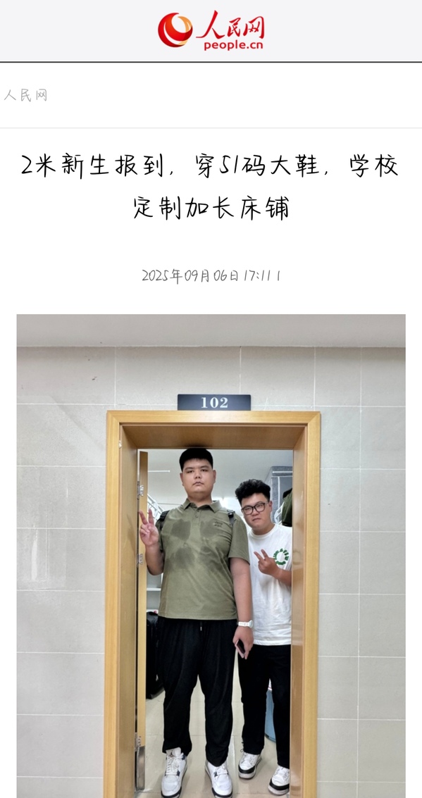 为了让柳兆轩有合适的床铺睡觉,学校还为他专门定制了2.15米长的床铺,并降低了床离地面的高度,便于他上下床。“学校的安排很细致、很暖心,为我们这些身高、体重特殊的学生解决了实际困难。”柳兆轩高兴地说道。对于即将开始的大学生活,他充满期待,“希望能够学好专业知识和英语,成为一个对社会有用的人”。