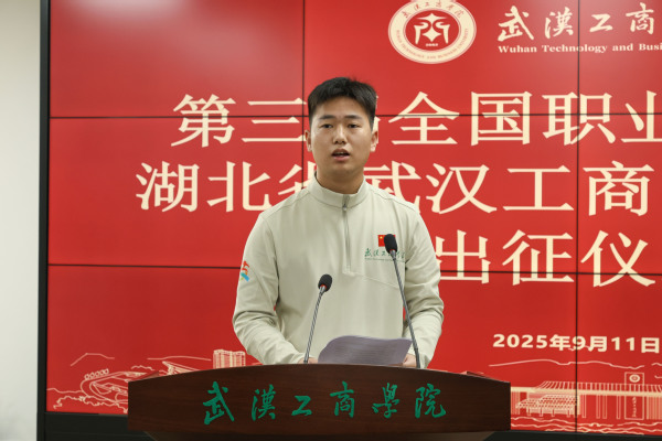 徐洪力代表全体参赛选手发言。他表示,经过系统集训,不仅提升了专业技能,更增强了团队协作和临场应变能力。在即将到来的比赛中,全体选手会倍加珍惜机会,全力以赴发挥最佳水平,为学校和湖北争光。