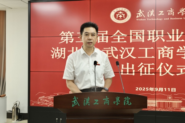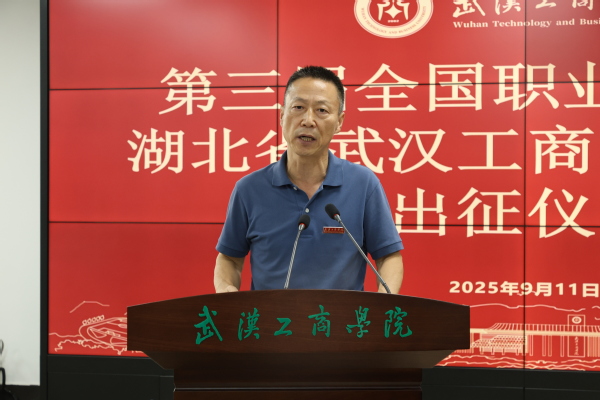 詹河焰发表动员讲话,他充分肯定了学校在组织、指导学生参加职业技能竞赛、培养高素质应用型人才等方面取得的工作成效,他指出,学校经过多年的积累,已获批4个国家级人才集训基地和数个省级人才集训基地,为学校高素质应用型人才的培养提供了高层次平台。他对教练、指导老师、服务保障人员在训练期间的辛勤付出表示诚挚的感谢,对通过层层选拔即将踏上比赛征程的选手表示热烈的祝贺,提出了殷切的期望,并预祝选手们代表湖北省赛出成绩、赛出水平、赛出风格。