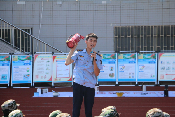 “记住灭火器正确使用方法的四字口诀:提、拔、握、压!”消防官兵现场演示了灭火器的正确使用方法,并组织学生进入模拟真实火场的烟雾帐篷进行疏散演习。警报响起,浓烟弥漫,新生们迅速反应,低姿捂口鼻有序撤离,消防车及时赶到现场展开救援。