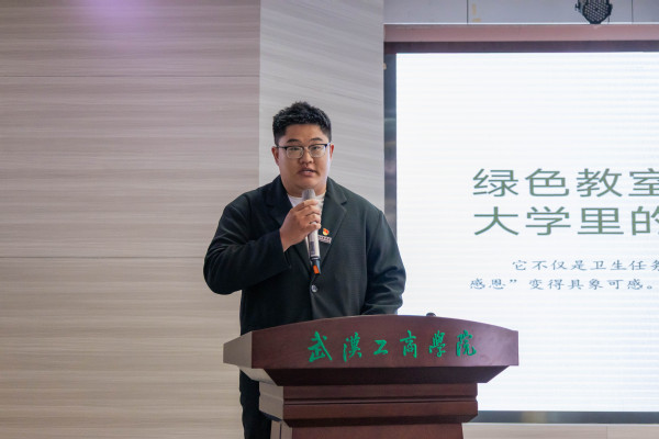 2024级电子商务学院市场营销S2班学生许本增、2024级应用技术学院计算机应用技术Z14班学生张泽同和2024级人工智能学院通信工程1班学生唐文强作为“绿色教室示范班级”获评代表分享了绿色教室工作中的经验和做法。