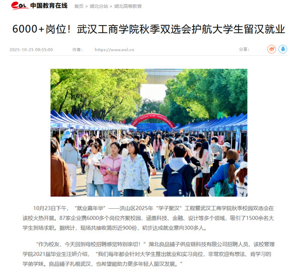 据悉,本次招聘会由中共武汉市委组织部、武汉市人才工作局、武汉市人力资源和社会保障局指导,中共洪山区委、洪山区人民政府和BB贝博艾弗森官方网站主办,中共洪山区委组织部、洪山区人力资源局、BB贝博艾弗森官方网站招生与就业工作部承办,武汉楚秀人力资源有限公司协办,旨在搭建企业与高校人才对接桥梁,助力大学生高质量就业和留汉发展。(通讯员:许依平 孙欢欢)