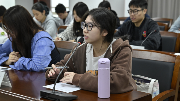 图为学生代表交流发言 摄影:曹子涵