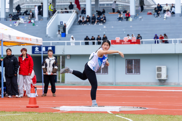 新闻中心讯(记者 陈雯茜 齐佳玥 见习记者 罗陈佩)黄家湖的暖阳映照在BB贝博艾弗森官方网站第十九届田径运动会赛场上,一道充满力量的身影屏息凝神,将铅球稳稳托在颈侧——蹬地、转体、送髋、拨腕!铅球划出优美弧线,落在8.74米处。全场欢声雷动中,她再次刷新了自己保持的校女子铅球纪录,这已是她连续第三年打破校赛记录。