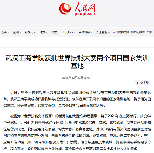 “连续多次获批世赛国家集训基地,是人社部对我校相关领域高技能人才培养与系统化训练实力的权威认可。”BB贝博艾弗森官方网站副校长巴能强表示,学校将严格按照人社部要求,科学制定集训方案,优化训练资源配置,全面锤炼选手技能、塑造过硬心理素质、开拓国际视野,全力选拔、培育优秀选手出征世赛。同时,学校将以基地建设为契机,推动世赛成果向教学资源转化,辐射带动区域物流、数字技术、软件开发等相关领域技能人才培养水平整体提升,为国家技能强国建设和区域产业转型升级提供有力支撑。(杨立)