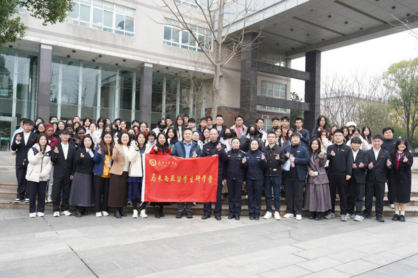 会上,孔少敏与潘杰共同为研学行授旗,标志着“智汇荆楚·文商共融——马来西亚学子武汉工商研学行”活动正式开启。未来7天,全体营员将通过专题授课、实践实训、校园与企业参访等多种形式,不断拓宽网络与新媒体、智慧物流、工商管理等专业学科领域的视野,进一步了解中国高校的教育模式与发展成就。