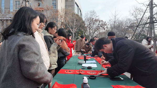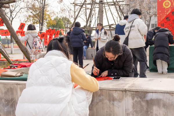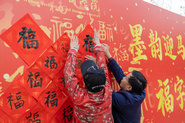 学校党委书记詹河焰、副校长赵北平、巴能强也来到师生中间,俯身提笔,共同书写“福”字,并向大家送上暖意融融的新年祝福。现场笑语不断,墨香与浓浓年味交织。