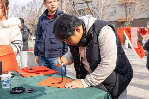 笔走龙蛇间,红纸黑字流淌出吉祥与祝福,一个个生动饱满的“福”字跃然纸上,一副副寓意美好的春联承载着新岁期盼。现场特设的书写体验区与“百福图”集体创作区,也吸引了众多师生驻足参与,有人凝神临摹,有人畅意挥毫,每一笔落纸都承载着真挚的新春心愿。