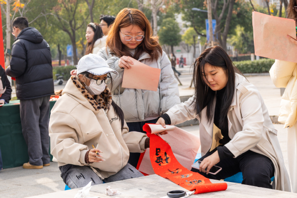 “自己写的春联,感觉特别有意义!”应用技术学院学生程梦圆手持墨迹未干的对联,脸上洋溢着喜悦。她说,这样的活动不仅让师生关系更亲近,也让传统文化变得可触可感,“希望每年都有这样的仪式感。”