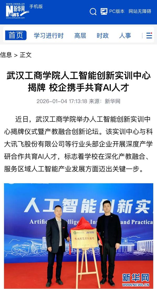 张俊表示,人工智能是引领新一轮科技革命与产业变革的核心驱动力,学校建设人工智能创新实训中心,是积极响应国家战略与区域发展需求,面向智能时代深化教育教学改革、推动产教融合走实走深的重要举措。该实训中心总投资近千万元,集教学、实训、研发、服务于一体,在建设过程中,与科大讯飞等企业开展深度合作,将产业前沿技术、真实项目案例和创新实践平台系统性地引入校园,为应用型、创新型人才培养注入了强劲的产业动能。(李洋洋、蓝静)