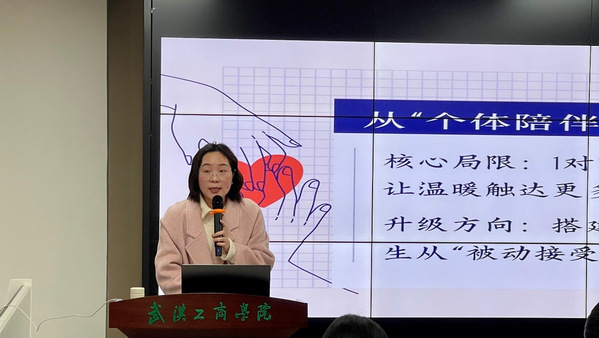 随后,中南财经政法大学国际法学院学办主任、优秀辅导员代表董星仙老师结合自身多年一线工作经历,分享了“贴近学生心理的沟通艺术与实践”。她通过大量生动的工作案例,展示了如何在实际工作中灵活运用心理技巧,走进学生内心,实现有效疏导与陪伴,为在场辅导员提供了可复制、可借鉴的实践范本,引发了广泛共鸣。