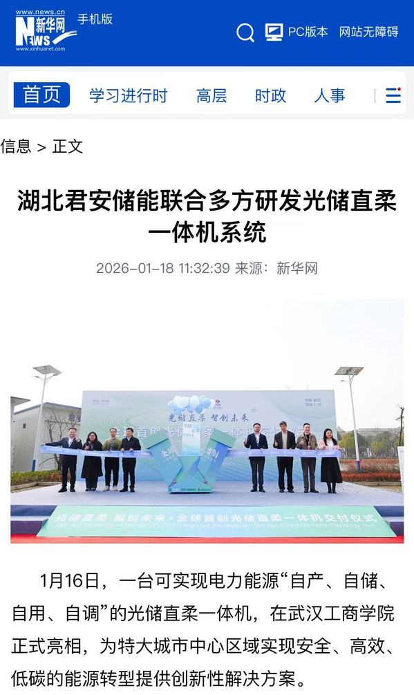 新华网:湖北君安储能联合多方研发光储直柔一体机系统