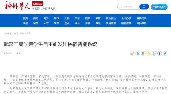 寒假里,在湖北宜昌一家民宿中,大学生赵双明正专注地调试着自己设计的智能家居系统。语音控制、远程联动、自动升级……这套由他独立研发的第二代系统,即将替换3年前搭建的初版。“推动我不断向前的,是对技术的纯粹热爱,以及成为一名嵌入式工程师的清晰目标。”他说。