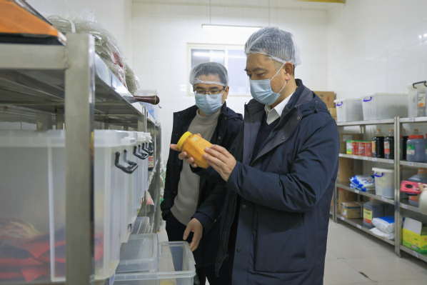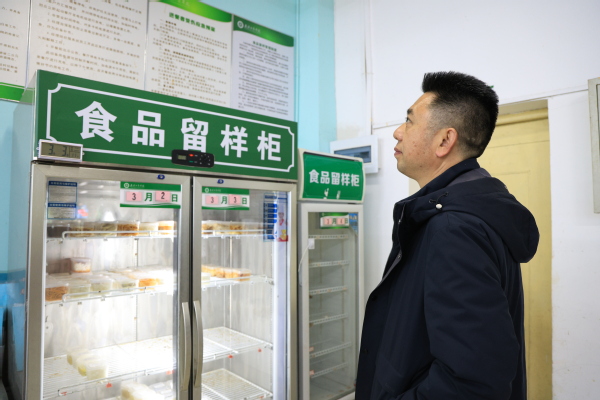 在食堂,詹河焰重点检查了就餐环境、食材采购记录、食品储存条件、食品留样及从业人员健康管理等情况,认真听取食堂负责人工作汇报。他指出,食品安全无小事,要牢牢守住校园食品安全底线,优化菜品供给,确保每一个环节都规范操作,切实保障师生吃得放心、吃得营养、吃得健康。