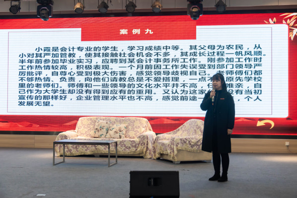 图为参加第七届辅导员素质能力大赛的肖隽正在进行案例分析 摄影:余剑韬