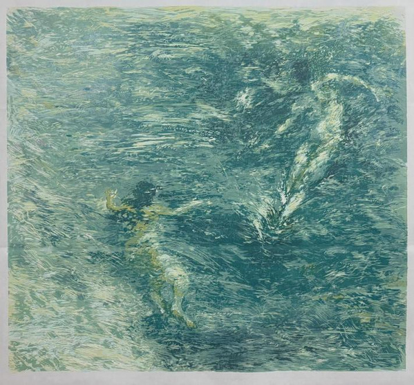 教师李婧文此次入选的作品《绿水生活》共三幅,以人与自然和谐共生为主题,通过描绘自然环境与人类行为的交互,展现人们对美好生活的向往,并深入探讨人与环境、社会之间的关系。在这一系列作品中,她运用木刻的刀痕纹理,捕捉自然界与人造环境中质朴的形态,并通过层层叠加,最终构建出一幅以时间为线索的生动图景。