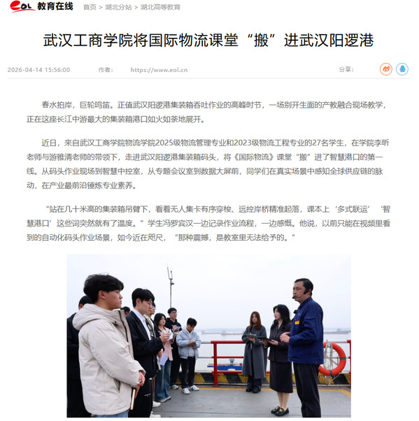 春水拍岸,巨轮鸣笛。正值武汉阳逻港集装箱吞吐作业的高峰时节,一场别开生面的产教融合现场教学,正在这座长江中游最大的集装箱港口如火如荼地展开。