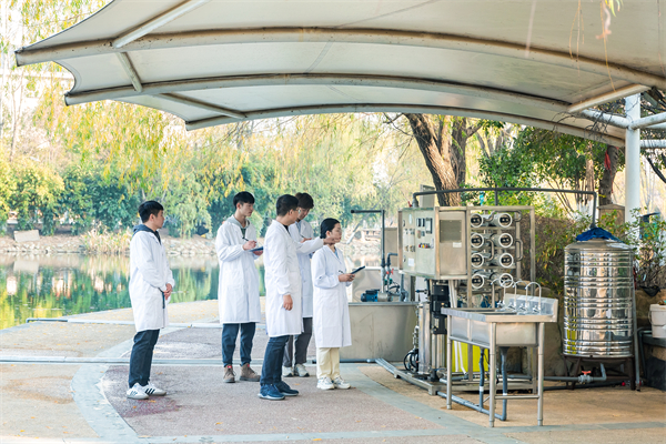 学校发挥学科专业优势,将生态文明理念融入育人全过程,深化产教融合、科教融合,率先成立了生态环境产业学院,“污水处理工艺虚拟仿真实验”课程被认定为国家级一流本科课程,“资源环境与智能化工程”学科群入选“十四五”湖北省高等学校优势特色学科群,校企共建了城镇污水深度处理与资源化利用技术国家工程实验室武汉实验室、湖北省污水资源化工程技术研究中心等高层次研究创新平台。师生共研的有机垃圾生化处理一体技术应用于校园有机垃圾资源化处置站,“吃进”5吨厨余垃圾可以“吐出”500公斤肥料,处理1吨垃圾的成本仅为70元,该处置站位于学校生态环境科技博览园。