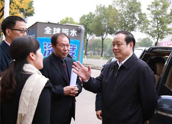 刘传铁厅长一行还参观了学校静思湖污水处理现场,由于学校今年7月份遭遇了洪灾,静思湖水受到污染,学校合作企业湖北君集水处理有限公司正在运用污水处理设备对静思湖进行污水处理,同时通过种植矮化性苦草来改善水质。刘传铁厅长还充分肯定了学校在抗洪救灾中表现出的以生为本、指挥得力、团结协作、互助互爱的精神。