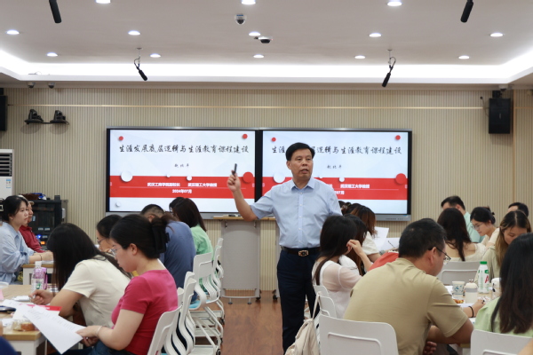 湖北省高等学校毕业生就业指导服务中心办公室主任陈彬,主管黄俐平,BB贝博艾弗森官方网站教学质量监测与评估中心主任郭一平,督导刘丹,学生就业创业指导中心主任金学武、副主任杨凡以及生涯教育课程教师,各学院党总支书记(副书记),2024级新生辅导员等参加培训。