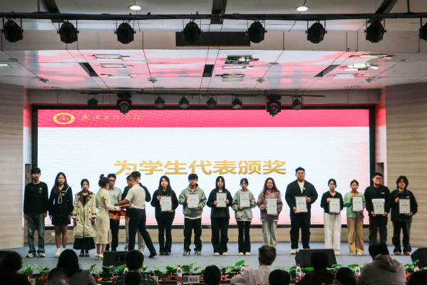 图为陈义文为获表彰的班级代表颁奖 见习摄影:杨芷若