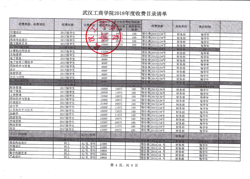 根据省教育厅、省物价局《关于我省民办普通高等学校学费标准备案及有关问题的通知》(鄂价费(2016)63号文)的文件精神,经向湖北省教育厅、湖北省物价局备案,我校2018年收费目录清单公布如下: