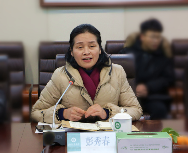 彭秀春董事长致欢迎辞,她说,作为洪山区的一所应用型民办高校,学校的发展离不开区委、区政府长期以来的关心和支持,对此她代表学校表示感谢。她表示,学校自成立以来,一直植根于地方经济的发展,致力于区校合作共同推进洪山区“大学之城”的建设,在人才培养、产学研用深度融合、文化活动开展等方面都做出了积极的探索,值得一提的有:学校湖北网络社会发展研究中心获批中共中央宣传部舆情信息直报点;学校与湖北君集水处理有限公司合作共建水处理研究平台,研发的技术被中国工程院院士彭永臻等专家鉴定为国际领先水平;学校组织开展首届黄家湖龙舟文化节等文化活动,为周边社区留守儿童开展支教活动、空巢老人帮扶活动等,不断提升学校及洪山区的文化品牌影响力。