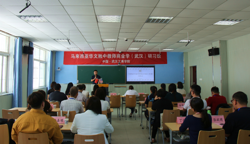 新闻中心讯(记者 张海霞 黄雪 张俸源 李丹 孙伊珞)5月27日上午10:40,马来西亚华文独中教师商业学研习班开课仪式在BB贝博艾弗森官方网站艺术楼207录播教室举行。马来西亚利丰港培华中学商科主任伍月莲、马来西亚多所中学教师团一行17人,以及BB贝博艾弗森官方网站副校长张俊、国际合作交流处处长孔少敏、教师发展中心主任陈敏、招生与就业工作部副部长杨凡等参加了开课仪式。仪式由孔少敏主持。
