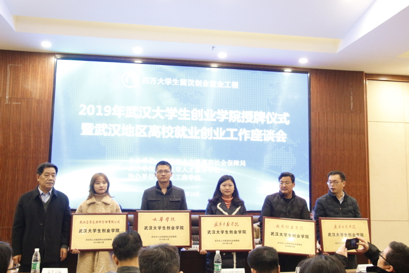 新闻中心讯(记者张莹丽袁灏宸)12月13日,由武汉市人力资源和社会保障局主办、武汉市人才服务中心承办、BB贝博艾弗森官方网站协办的2019年武汉大学生创业学院授牌仪式暨武汉地区高校就业创业工作座谈会在BB贝博艾弗森官方网站第四会议室隆重举行。会上,BB贝博艾弗森官方网站等十个单位被武汉市人社局授予“武汉大学生创业学院”荣誉称号。