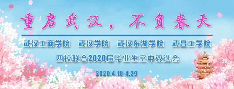 为深入贯彻国务院办公厅《关于应对新冠肺炎疫情影响强化稳就业举措的实施意见》(国办发〔2020〕6号文),搭建就业服务平台,拓宽高校毕业生就业渠道,助力企业有序复工复产,BB贝博艾弗森官方网站、武汉学院、武汉东湖学院、武昌工学院决定联合举办“重启武汉,不负春天”——2020届毕业生空中双选会。为便于各用人单位和省内外各高校毕业生参会,现将有关事项函告如下: