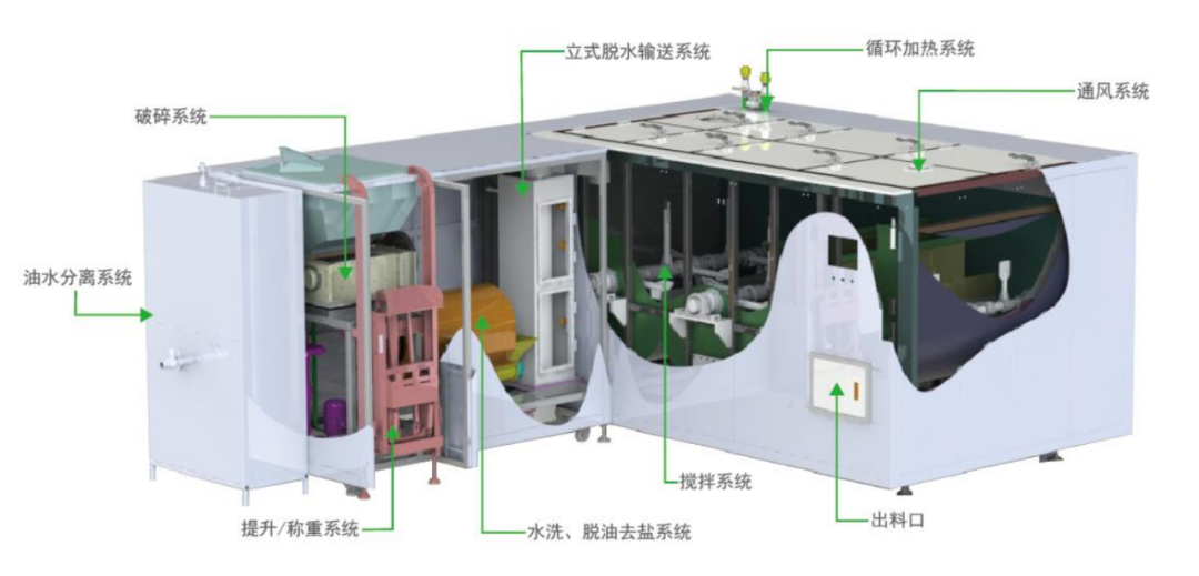 该餐厨垃圾处理站占地面积仅为198平方米。巴能军董事长介绍,君集水处理有限公司利用微生物高温好氧发酵技术,与BB贝博艾弗森官方网站开展产学研合作,形成了一套新型餐厨垃圾资源化处理智能装备——餐厨垃圾生化处理一体机 ,经分选、提升称重、粉碎脱水、油水分离、微生物发酵等环节,能够在24小时内将餐厨垃圾减量化达到90%以上。最终,分离的油脂可以作为生物柴油原料,污水经CUF 膜生物反应装置处理后达标排放,废气经喷淋塔生物除臭达标排放,脱水后的物料经发酵后“变身”为符合国家NY-525《有机肥料》标准的有机肥料,通过水、气、渣综合治理,真正实现餐厨垃圾资源化、无害化、减量化。