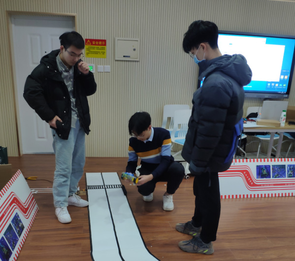 为了保证比赛的公平公正,本次比赛规定所有参赛队只能选用51和STM32两款单片机,比赛流程及规则按照省赛标准,按智能车跑完一圈赛道的最短用时来核算成绩。比赛过程中,计时、引导、裁判、评委任务分工明确,上交车模、试车、正跑与反跑等比赛流程有条不紊,各参赛队队员团结协作,密切配合,负责调试的队员不断检查着小车,其他队员则认真擦拭赛道与小车轮胎,努力确保小车处于稳态,大家通力合作,只见一辆辆智能小车在曲折的赛道上奋力飞驰。