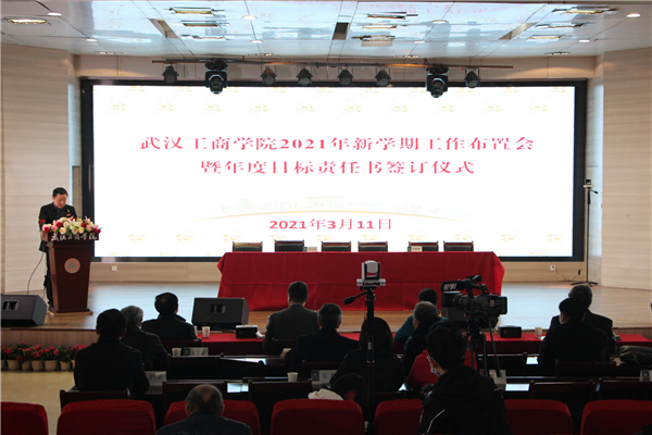 新闻中心讯(记者 陈彦芳 谢佳)3月11日下午2:30,BB贝博艾弗森官方网站2021年新学期工作布置会暨年度目标责任书签订仪式在学术报告厅举行。学校董事长彭秀春,党委书记刘生元等校领导及学校全体中层干部出席本次会议,学校教职工通过线上的方式参会。会议由张俊副校长主持。