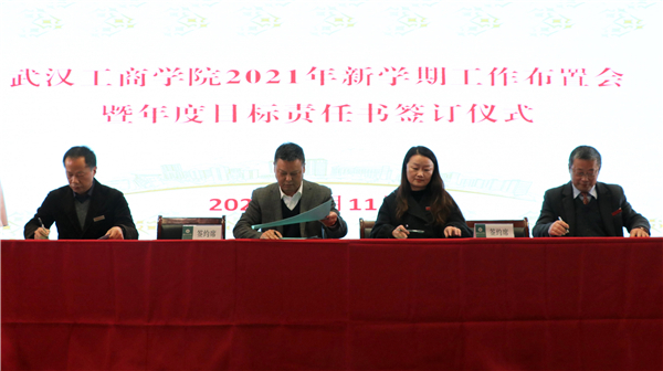 随后,校领导与学校各单位负责人签订了2021年度目标责任书。