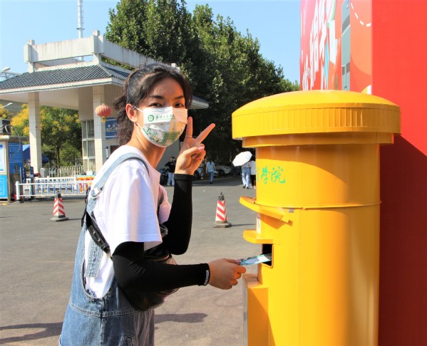 迎新现场,萌新们还在明信片上写下了自己对大学生涯的规划及梦想,并将明信片投入“未来站邮筒”,待毕业时再次开启,满怀希冀,开启大学时光。