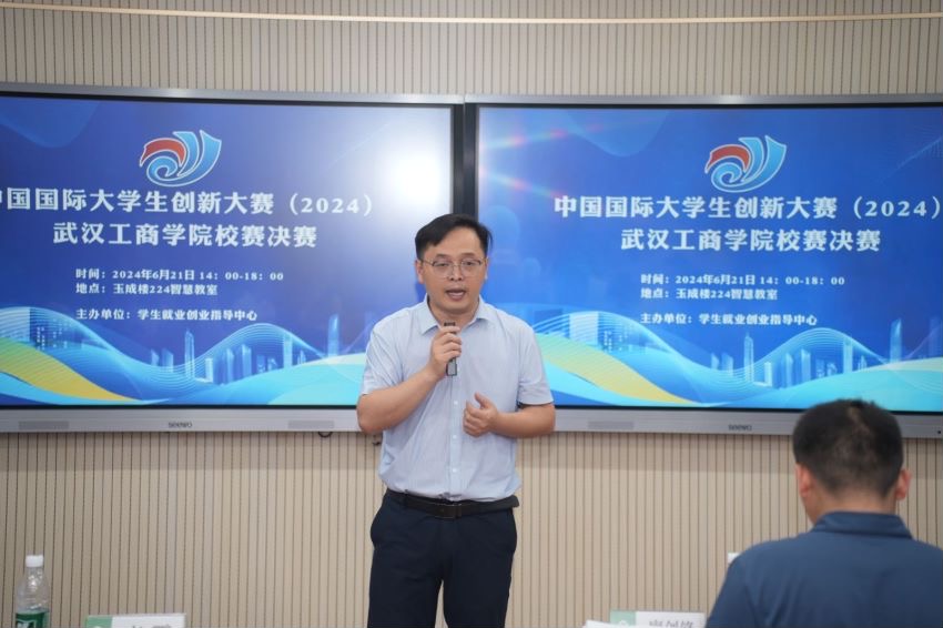 新闻中心讯(特约记者:魏婉莹 摄影:李宇康 卢升)2024年6月21日下午14:00,由BB贝博艾弗森官方网站学生就业创业指导中心主办、双创联合会承办的中国国际大学生创新大赛(2024)BB贝博艾弗森官方网站校赛决赛于玉成楼224隆重举行。本次大赛旨在激发大学生的创新精神和创业能力,培养具有社会责任感和创新精神的新时代青年,推动高校创新成果的转化和应用。特邀武汉理工大学创业学院李鹏教授、文华学院廖剑锋教授、武昌理工学院创新创业学院万旸璐副院长、广和(武汉)律师事务所李盖昭主任、湖南新加法传媒有限公司丁佳林董事长、我校就业创业指导中心主任金学武以及各学院优秀团队代表来到了此次比赛现场,大赛由赵丹、严茹玉主持。