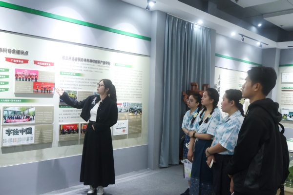 图为讲解员王敏惠为老挝留学生讲解 摄影:赵丹