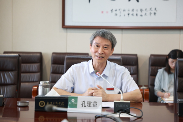 会上,孔建益校长对张再强副主任一行表示热烈欢迎,对洪山区和青菱街道办领导长期以来对学校事业发展的关心和支持表示感谢。他简要介绍了学校办学历程、办学成果,以及学校近年来在推动教育教学改革、深化产教融合、强化科研创新等方面所做的努力和取得的成效。他呼吁洪山区政府加快完善黄家湖路丽水西路至新港段的建设,打通黄家湖环湖绿道,提升黄家湖湿地公园的生态环境,为周边十万余名大学生提供舒适宜人的求学、居住环境,真正实现生态育人、环境育人。