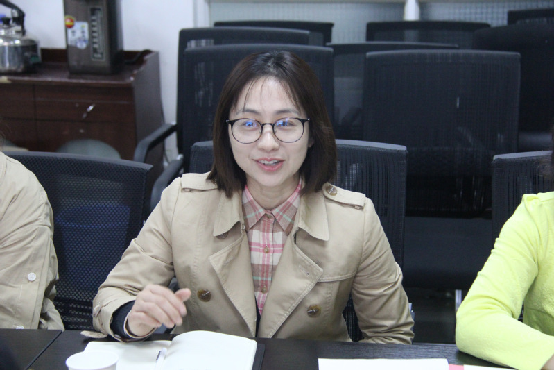 分团委书记舒娟老师从其他角度引发了话题。介绍了我院教学和学工的配合情况、教师一人多职、学分制度、重修成本、校内比赛和社团活动,通过双方交流,在这些方面存在一些差异。