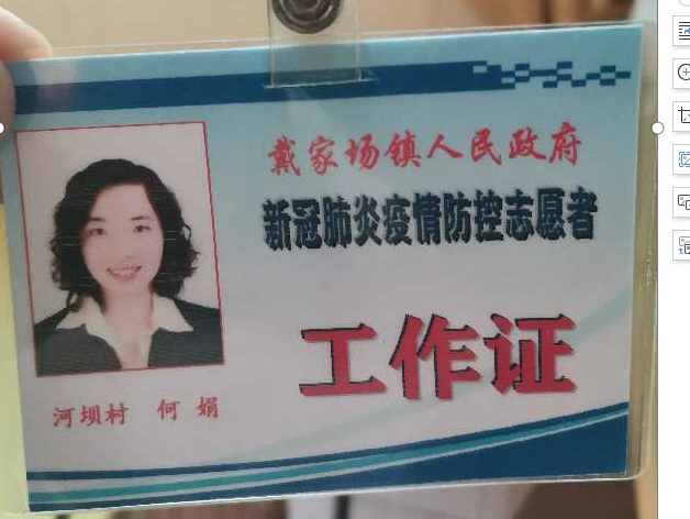 2月21日,何娟老师度过隔离期就和她的爱人迫不及待地向所在湖北省洪湖市戴家场镇河坝村报到,他们成为新冠肺炎疫情防控志愿者。此后她为全村1489名村民和758名返乡人员提供体温检测,负责数据统报、诊所消毒和食品药品代购等工作。