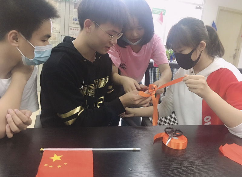 活动第二项,由大三学长李翔翔、学姐张洁带领师生一起做月饼和中国结。活动现场氛围热烈,充满了欢声笑语,大家都积极地向学长学姐请教怎么做月饼和中国结,对于制作过程中遇到的困难,学长学姐充满了耐心,手把手地进行指导。随后,学生还与家长连线进行了视频互动,新生代表20电商本1 陈永康,20电商本3冯世锦,毕业生代表17信管本2 张金雨视频连线了家长,他们向自己的家人展示了亲手做的月饼、中国结以及手链,并表达了由衷的祝愿和对父母的感恩之情,现场参与同学给家长们中秋国庆祝福,家长同时也表示此次活动十分有意见。此次“饼饼节”活动全院各年级学生代表相聚一堂,最后由大一新生辅导员刘芳老师以及电子商务学院分团委书记舒娟老师现场给新生、老生发放月饼。“饼饼节”活动圆满结束。