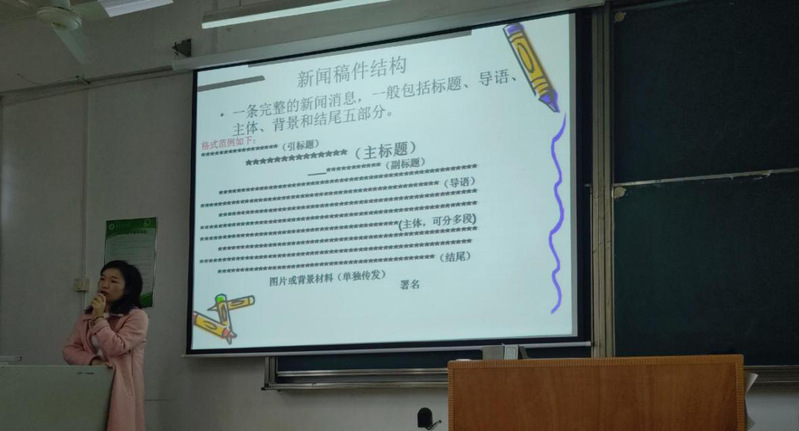 培训正式开始。为了吸引大家的注意力,舒娟老师以一段求职小故事开头,意在说明新媒体在当今不可或缺的地位。之后舒娟老师主要从新闻报道、拍摄技巧两个方面通过真实的活动案例进行讲解。新闻报道从其特点引入:立场要观点鲜明、内容要真实具体、反应要迅速及时、语言要简明准确。然后从新闻基本结构:标题、导语、主语、主体、结语、背景六个方面进行阐述。拍摄技巧方面从拍摄角度、重要场景选择、光线选择、拍摄构图、拍摄现场互动等方面进行了讲述。最后舒娟老师认为只有提前做好相应准备工作使文字与图片达到一定的契合度才能达到报道的目的。