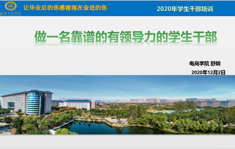新闻中心讯(记者 赵恩其)2020年12月2日,电子商务学院开展了2020年学生干部培养工程于综合楼607教室如期举行,此次培训由BB贝博艾弗森官方网站电子商务学院分团委书记、学生第二支部书记舒娟老师主讲,参与人员包括学生会、马研、信协以及各组织全体成员。