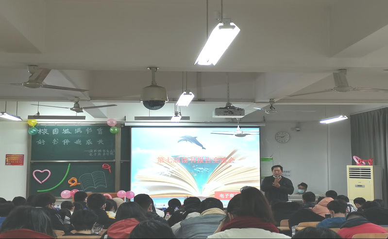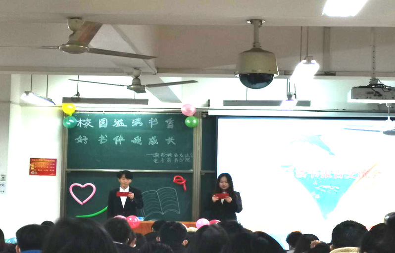 此次活动有六名德才兼备的同学分享了自己的读书经历和感受。第一环节是PPT展示,各班代表上台进行展示,分享自己读书的心得体会。整场活动的气氛都是欢快而舒适的,同学们也都表现地十分地热情。