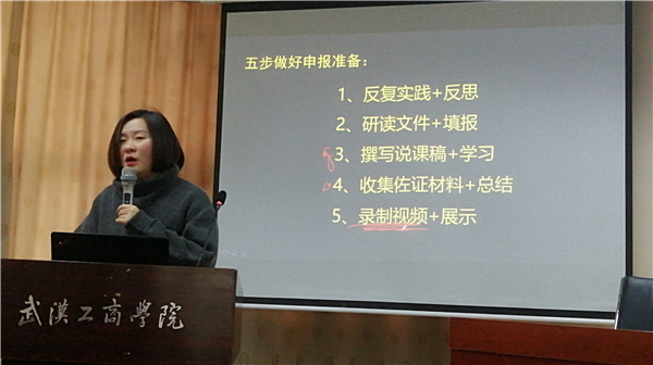 随后,孔老师对于如何“五步做好申报准备”进行了详细解析:一是,反复实践,迭代一门好课;二是,研读文件,打磨申报书;三是,撰写说课稿,学习说课技巧;四是,收集佐证材料,总结凝练;五是,录制说课视屏,展示汇报。