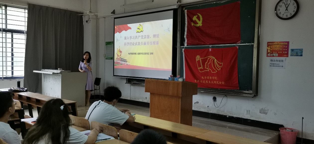 新闻中心讯(记者 刘沐辰)5月27日,我院于中午13:00在综合楼204开展了第二次党校学习,本次党校培训的主讲老师是电子商务学院信管学生支部书记舒娟老师,本次党校课程围绕着:怎样的党、怎样的精神谱系、党的宗旨、新时代“大党”特征、党的纲领、身边榜样,前行力量和做合格大学生这五大主题展开。